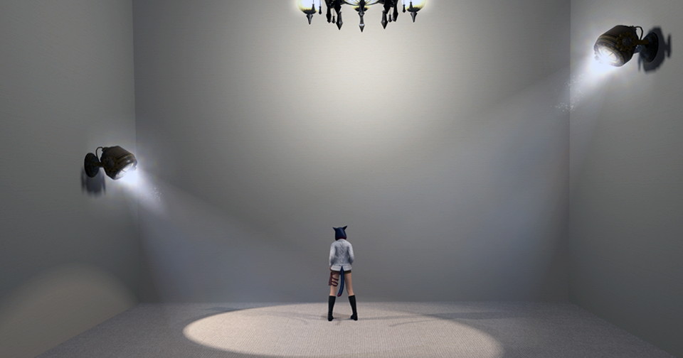 ラノシアン・シャンデリアが環境光の代用かつ天球ライトに相当するので、ハウジングの照度を下げる場合、自ずとライトの真下に近い位置にキャラを立たせる事になります。