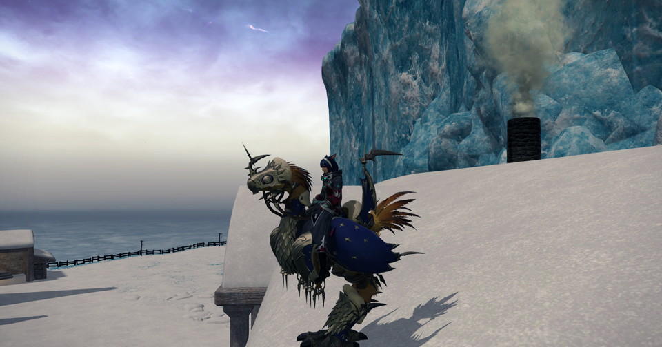 場所が悪いせいなのか、FF14のSSでは天候が「吹雪」でもあまり雪が映り込まず雰囲気が出ませんので、フォトショのカスタムブラシでそれっぽく追加します。