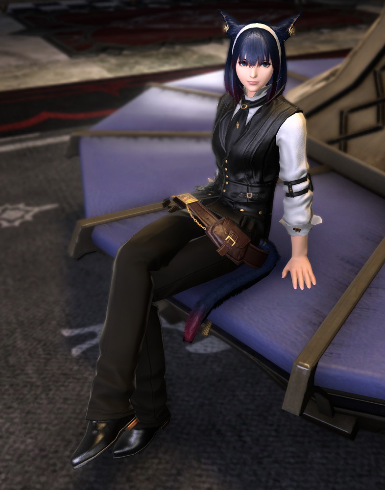 脚装備は以前はベストマン・スラックスを合わせていたのですが、この装備、スラックスという名前にも関わらず裾が短すぎてくるぶしが見えてしまうというチンチクリンカジュアル過ぎる見た目でした。